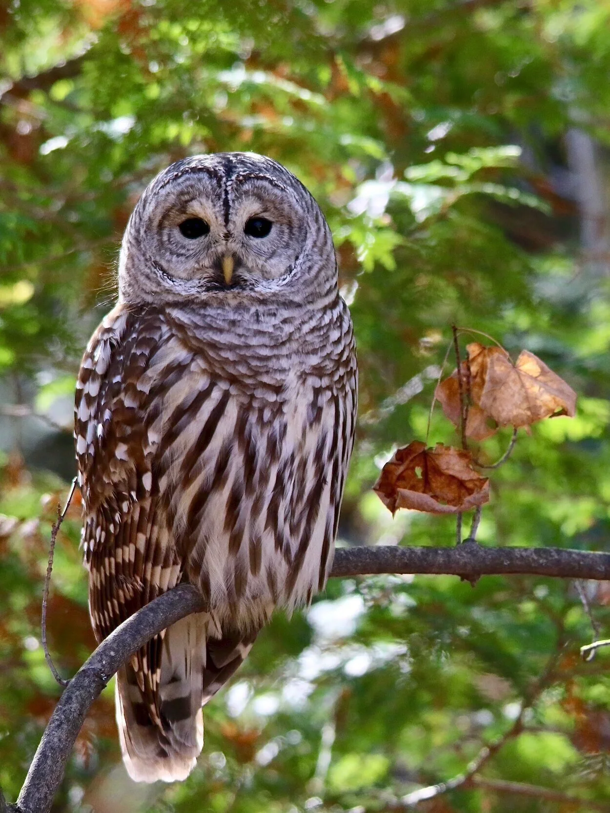 If you’re lucky you may even spot a bald eagle or osprey soaring over the lake and of course the common loons and whip-poor-wills will put you right to sleep. This barred owl was right beside the trail, offering fantastic photo opportunities!